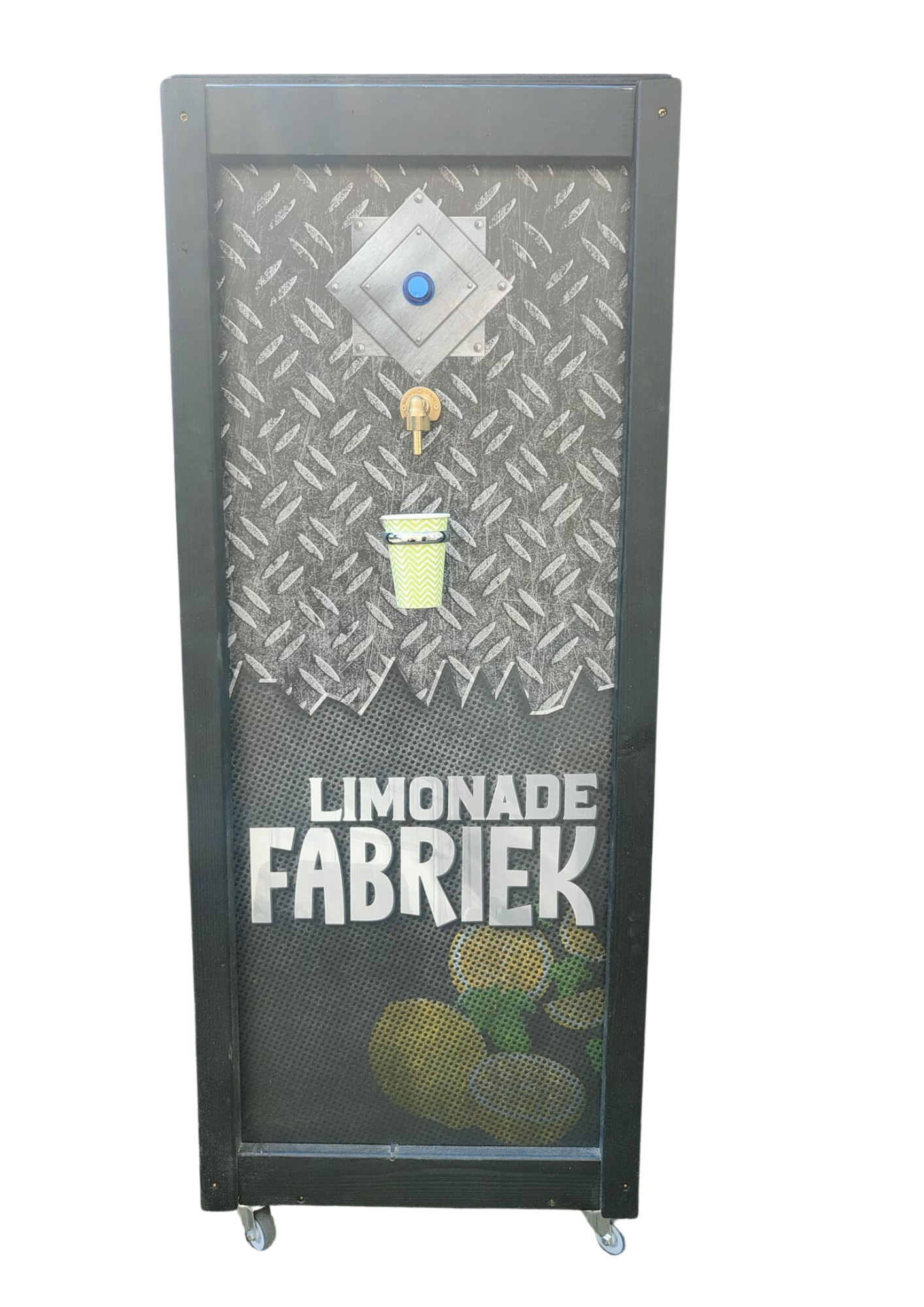 Druk aan de voorkant op de knop, en deze leuke eyecatcher voorziet de kinderen van een lekker bekertje limonade. Voor de kinderen één groot feest, de kinderen zullen in ieder geval geen drinken tekort komen. Succes verzekerd!